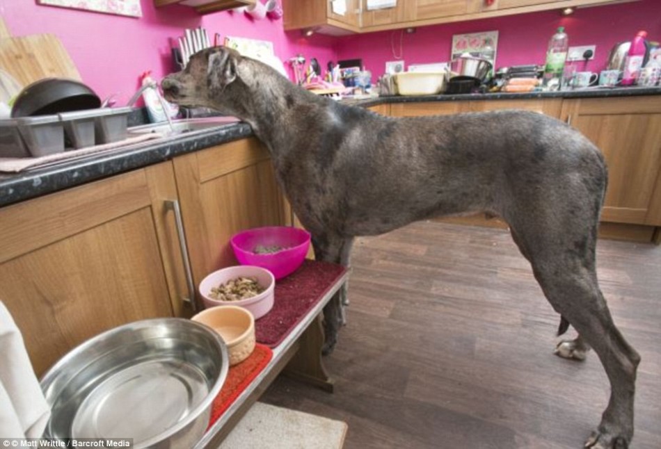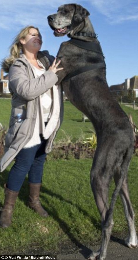 大丹犬弗雷迪(Freddy)是有正式记录的世界最大的狗,它后腿站立时能达到2.3米高。现在,弗雷迪和主人克莱尔·斯通曼(Claire Stoneman)生活在英国埃塞克斯郡的滨海利(Leigh-on-Sea)。