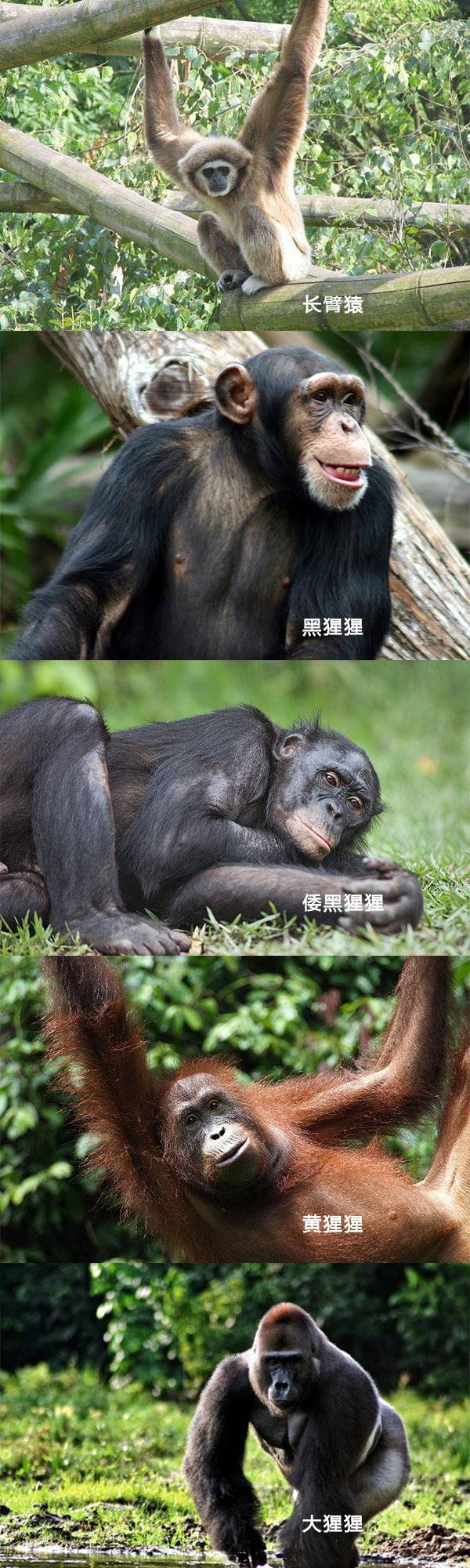 有没有什么办法能够快速分辨猿和猴子呢?有,看是否有尾巴——几乎所有的猴子都有尾巴,而猿则没有。