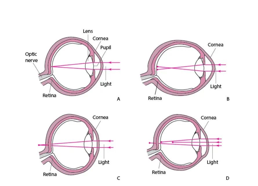 入射光线经过角膜、房水、晶状体和玻璃体的一系列屈光系统后聚焦于视网膜表面,形成清晰的图像传入大脑,使我们能够看清物体。正常情况下,角膜的屈光力是固定的,而有弹性的晶状体可以通过睫状肌改变其形状来调节屈光力。
