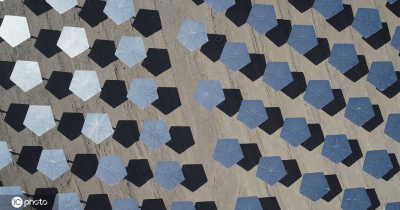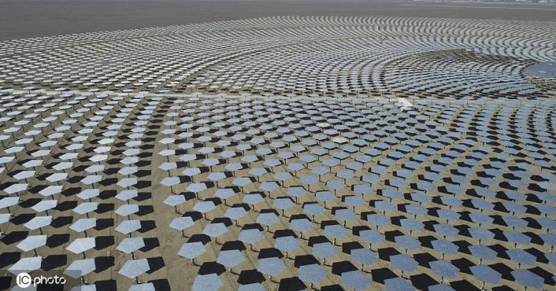 2021年6月中旬,我国首批光热发电示范项目——新疆哈密50兆瓦熔盐塔式光热发电项目,完成地面14500面定日镜安装调试,进入稳定发电期。14500面定日镜在黄色戈壁上整齐地排列,在阳光下熠熠生辉,仿佛一片“银色向日葵田”。