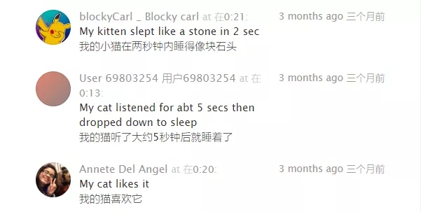 当然这专辑到底管不管用,还得大家的猫听了才说的算。多数猫主人在这张专辑中的《Cosmos Air》下面评论,听完之后猫就想睡觉了。