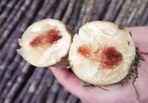 霉变的甘蔗在两端还会出现一些絮状或绒毛状的白色物质,切开果肉后还会发现红色的丝状物在其断面中。